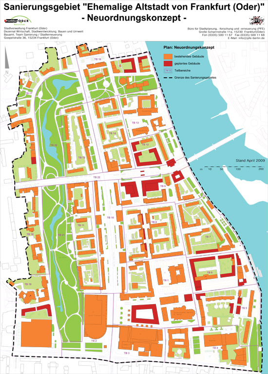 Das erste Neuordnungskonzept wurde zu Beginn des Sanierungszeitraums 1998 erarbeitet. Nachdem die 2. Fortschreibung des Stadtumbaukonzeptes und das Integrierte Stadtentwicklungskonzept (INSEK) vorlagen, wurde das Neuordnungskonzept unter intensiver Abstimmung mit den genannten Konzepten fortgeschrieben. Die Fortschreibung des Neuordnungskonzeptes wurde am 30. Juni 2009 von der Stadtverordnetenversammlung Frankfurt (Oder) beschlossen.